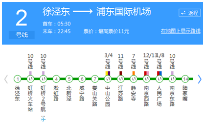 D. 浦東國際機場站上車,乘坐地鐵2號線東延伸段(廣蘭路方向), 在廣蘭路站 下車(8站)乘坐地鐵2號線(徐涇東方向),在徐涇東